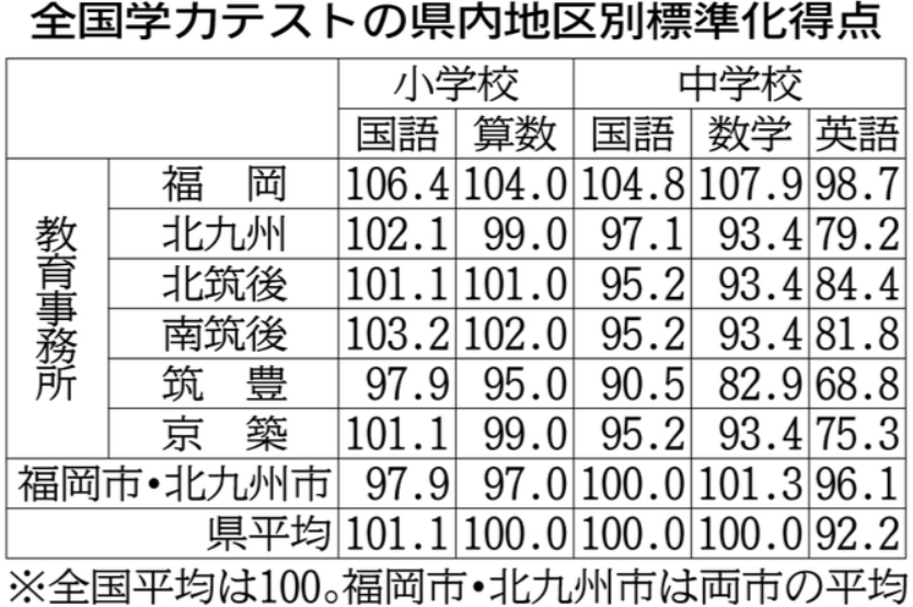 福岡県教育委員会は、本年度の全国学力・学習状況調査(全国学力テスト)の県内の結果を発表しました。毎年実施される小学校の国語と算数、中学校の国語と数学の計4教科で、県平均がいずれも全国の平均以上となっています。今回で2回目となった中学校の英語は全国平均を下回っていますが、福岡県は各自治体ごとに教育に力を入れています。