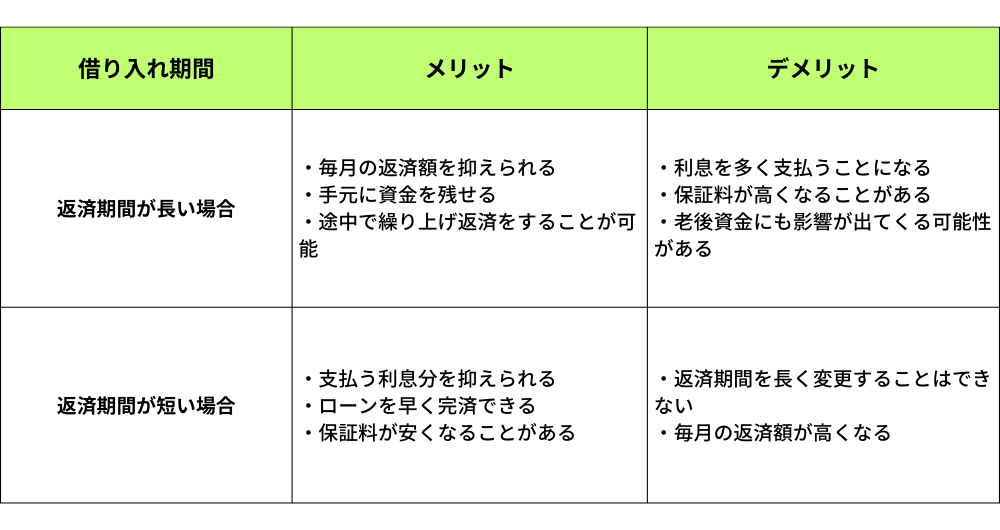 返済期間ごとのメリット・デメリット