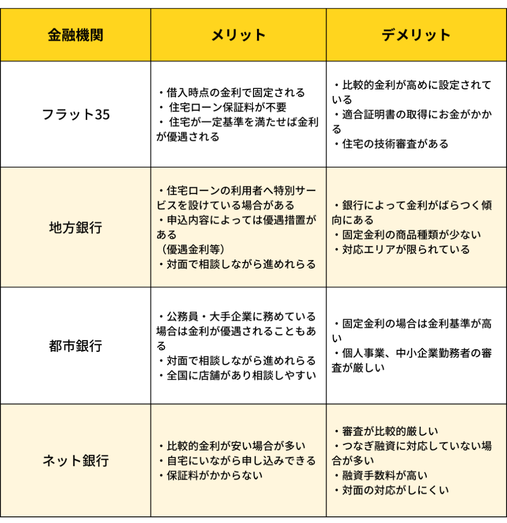 金融機関ごとのメリット・デメリット